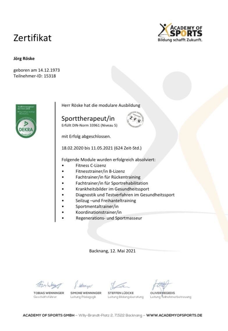 - Lizenzierter Trainer für Krankheitsbilder im Gesundheitssport